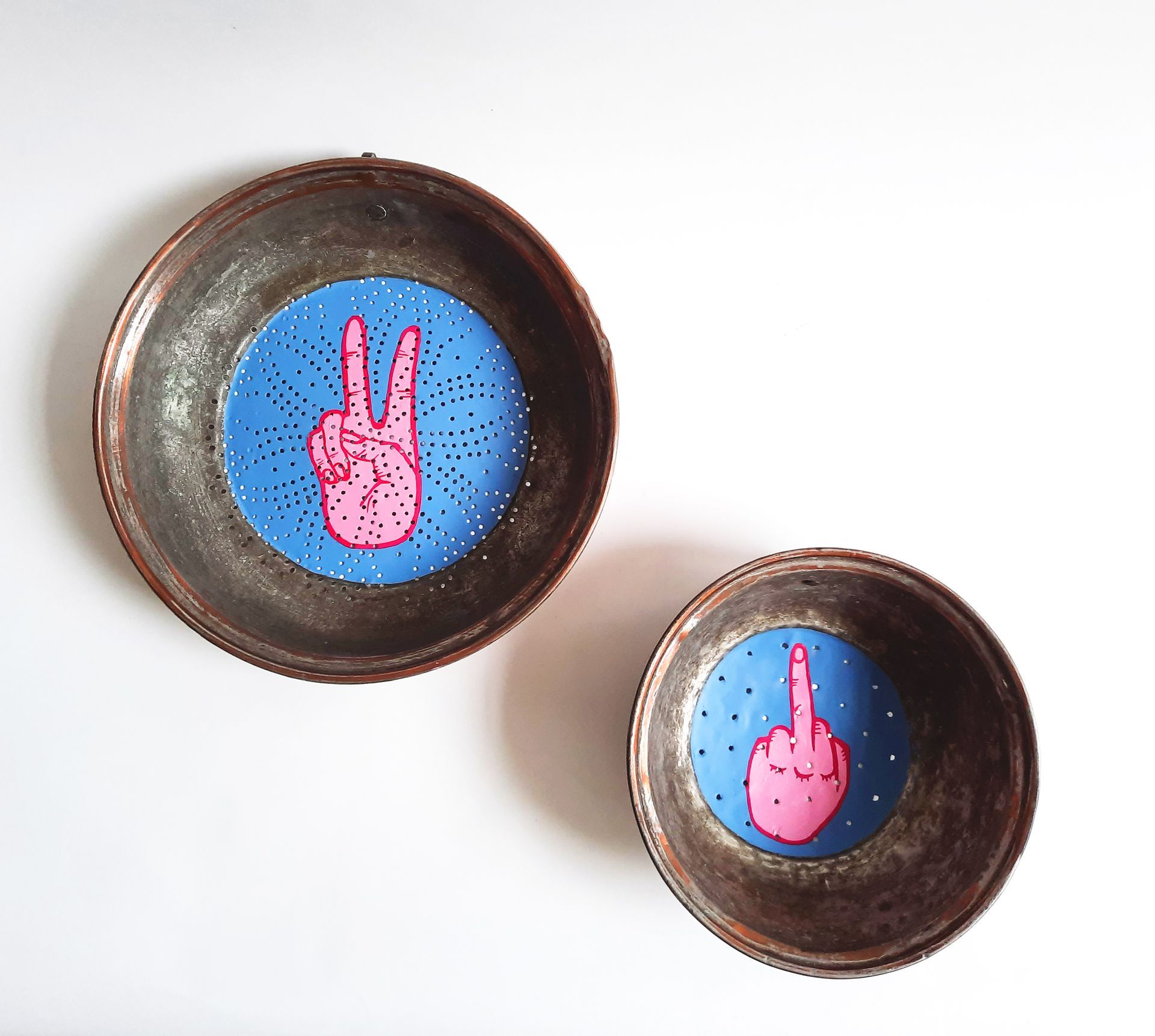 Acrylic on copper strainers